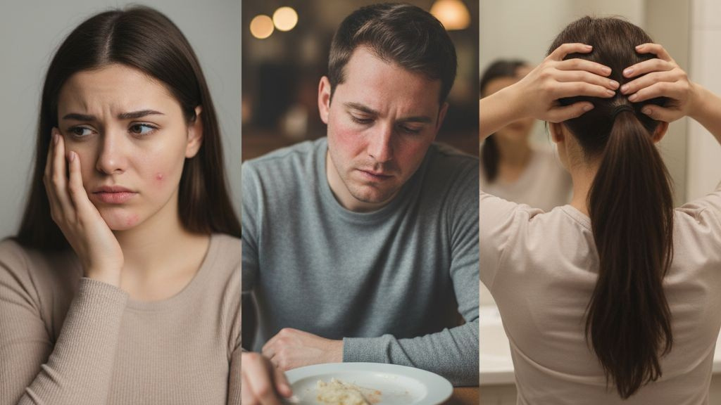 • Poor sleep from stress slows skin repair, making symptoms linger.